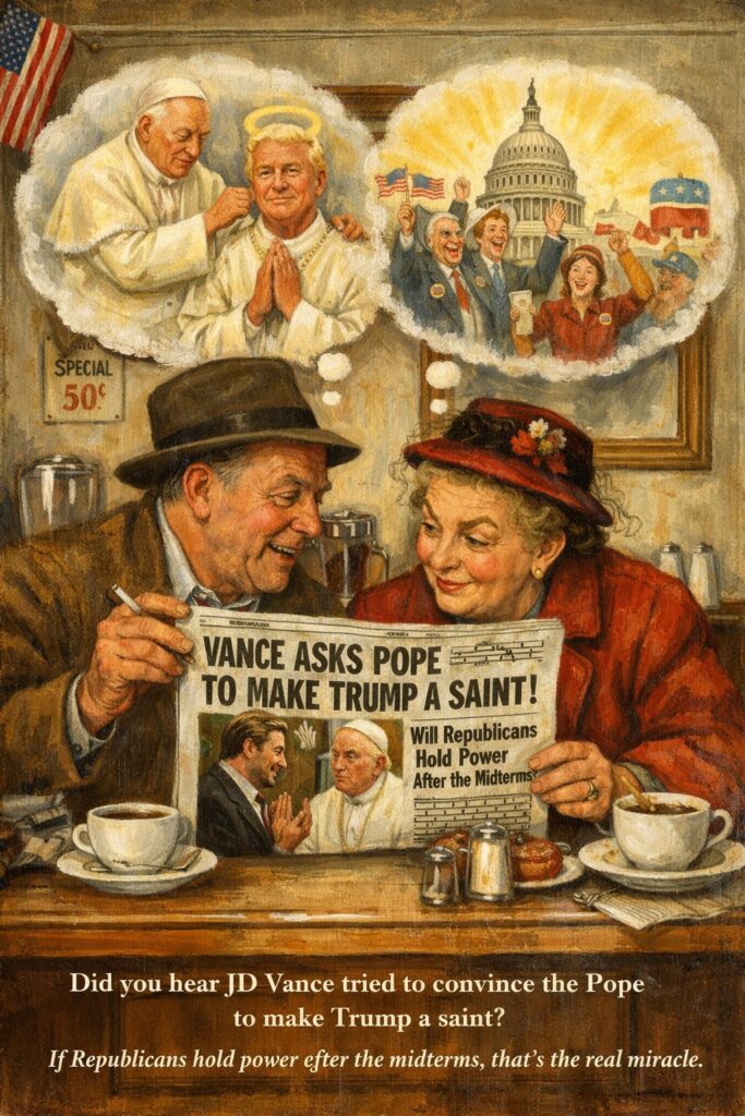JD Vance’s words to the Pope, “Be careful,” captures the “stay in your lane” warning that the Vicar of Christ has gone to meddlin’. The sermons are wonderful up to the point the pastor overturned the tables of the moneychangers. The pastor’s perceived job is to sprinkle holy water on the business shenanigans of the church members and “Give me a little blessing!,” like an ordained “rabbit’s foot.”